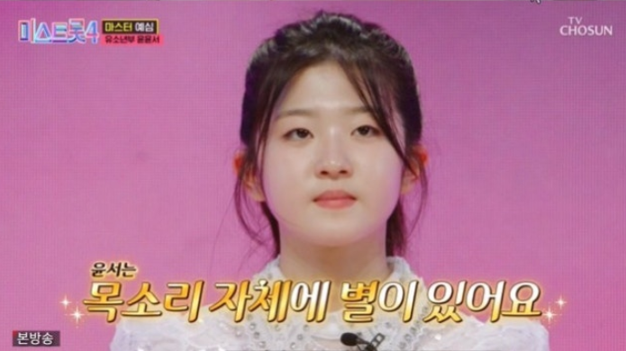 윤윤서 양의 진가는 TV조선 미스트롯4에서 제대로 폭발했습니다. 마스터 예심에서 심수봉의 '비나리'를 선곡한 그녀는 12살이라고는 믿기지 않는 깊은 저음 울림과 세밀한 감정 표현으로 마스터들의 전원 합격(올하트)을 이끌어냈습니다. 당시 마스터들은 "기본 실력이 너무 좋다", "완성형 신동이다"라며 극찬을 아끼지 않았습니다.