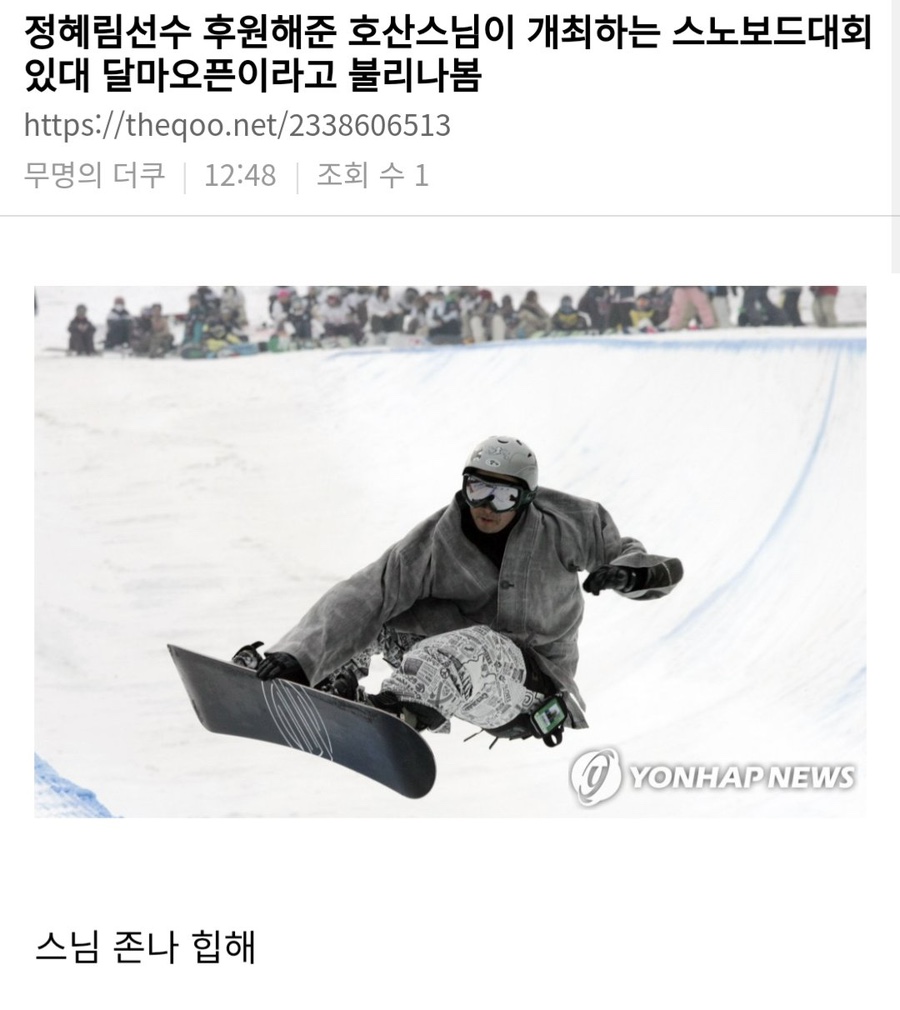 호산스님 프로필부터 나이, 사찰, 그리고 20년 넘게 이어온 호산스님 스노보드 사랑과 달마배 대회의 역사까지 상세히 정리해 드립니다.