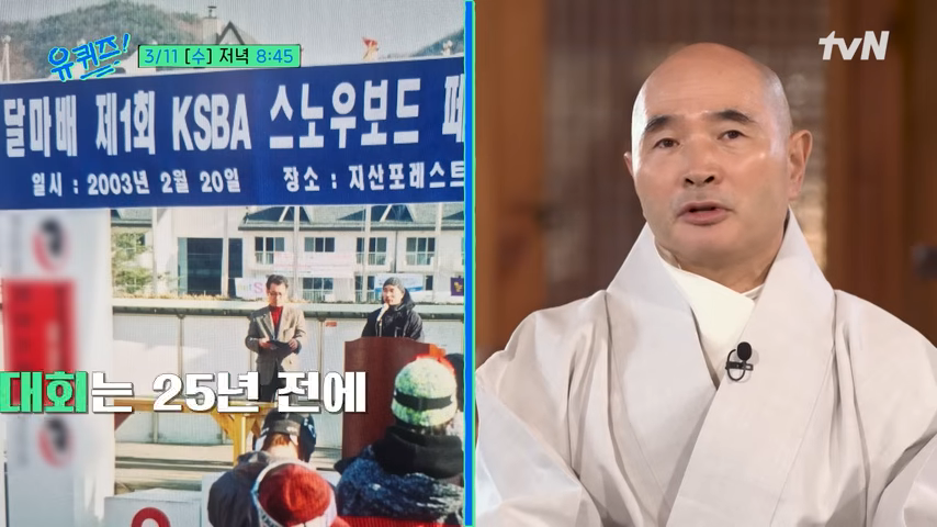 스님과 스노보드의 운명적인 만남은 1990년대 중반으로 거슬러 올라갑니다. 당시 봉선사 재무국장으로 재직하던 중 인근 스키장에서 잦은 사고가 발생하자 무사고 기원 기도 요청을 받게 되었는데요. 기도를 마친 후 받은 스키장 이용권으로 처음 설원에 오른 스님은 그곳에서 스노보드를 접하게 됩니다.
