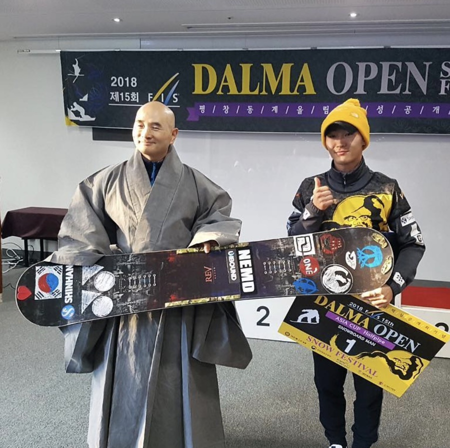 스님은 설원에서 만난 청소년 선수들이 열악한 환경 속에서 운동을 포기하려 한다는 사실을 알고 달마배 스노보드 대회(현 달마오픈 스노우 페스티벌)를 창설했습니다. 2003년 조계종 포교원의 지원으로 시작된 이 대회는 국내 최장수 스노보드 대회로 자리 잡았습니다.
